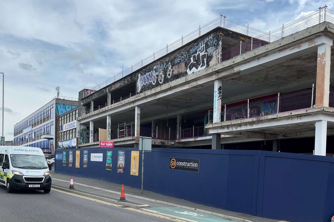 View showing the retention of existing concrete frame structure & brickwork facade